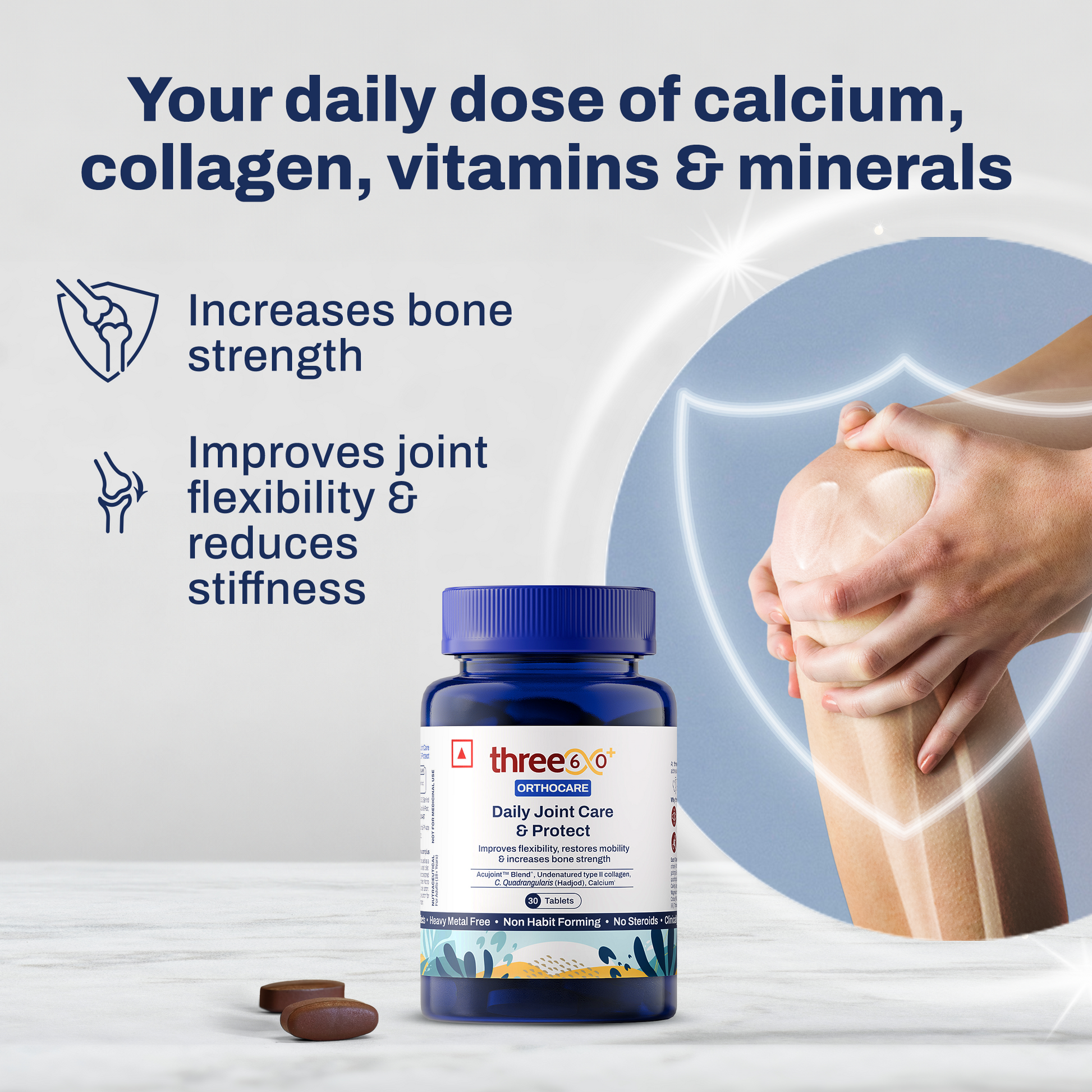 Daily Joint Care & Protect tablets strengthen your bones & improve your mobility. It promotes cartilage repair and reduces joint stiffness to ensure you get holistic joint care.