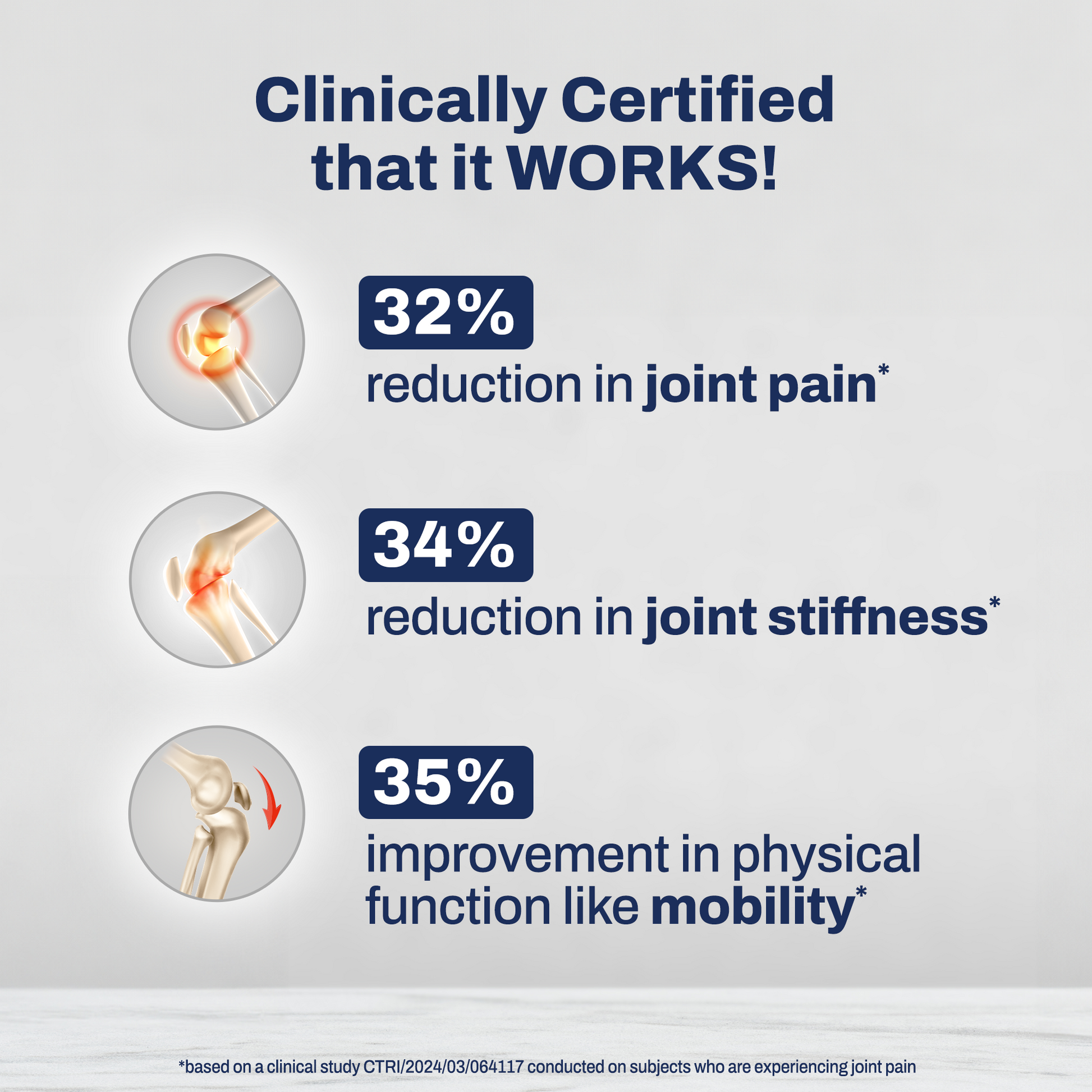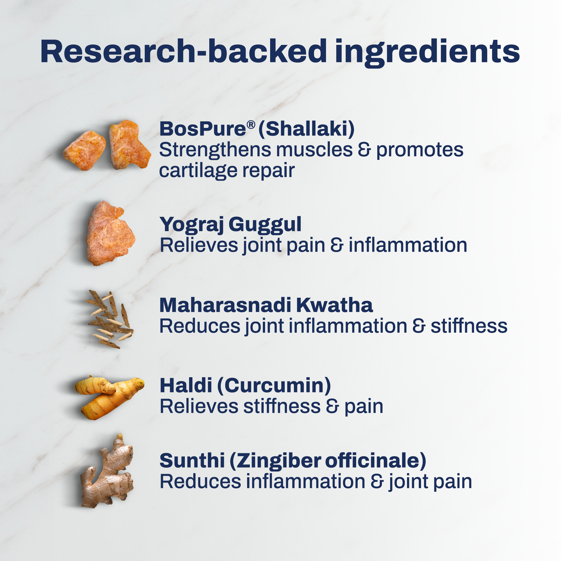 three60+ Pain Relief & Joint Mobility tablet eases joint pain, reduces stiffness, and enhances joint flexibility. It strengthens joint muscles & helps you reclaim your life.